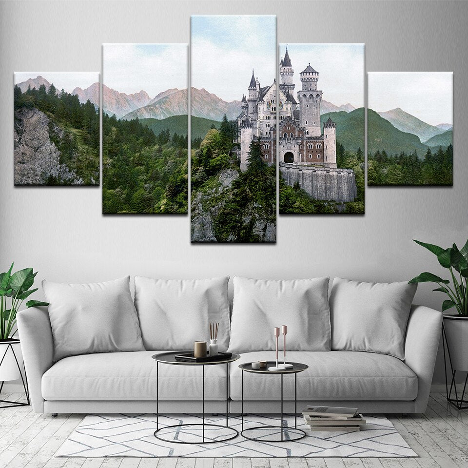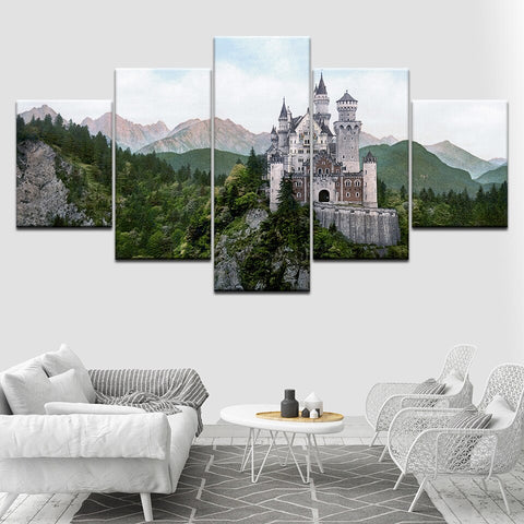 tableau château perdu dans les montagne
