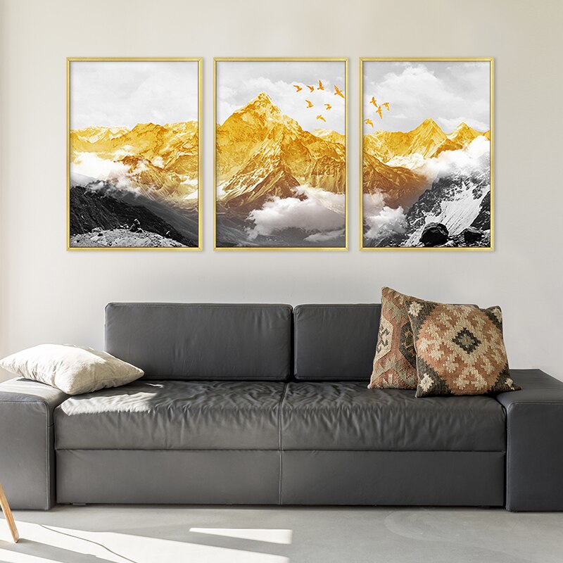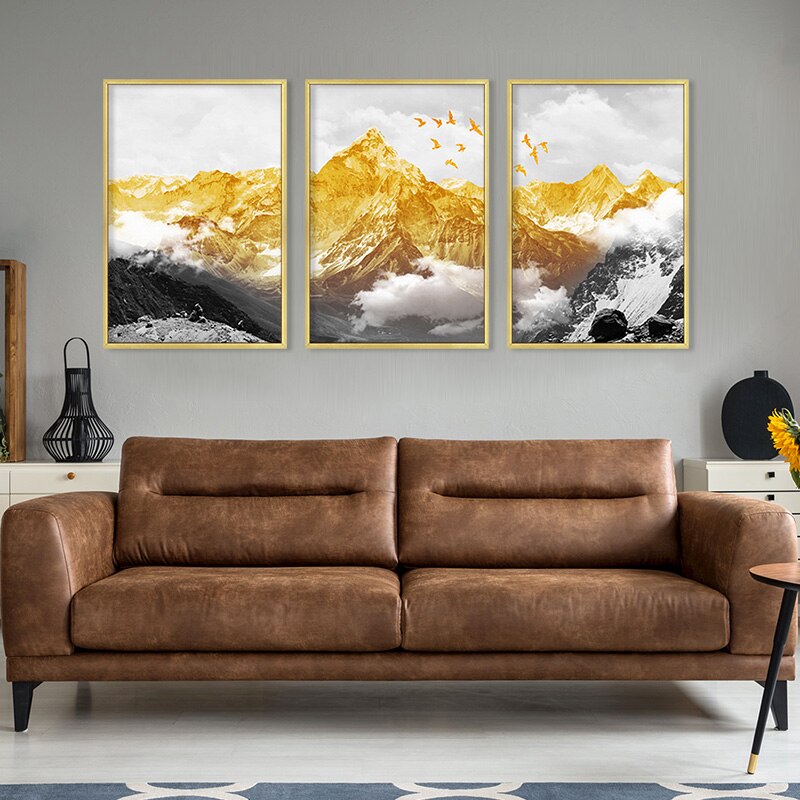Si vous avez déjà une pièce marquante dans la pièce, vous pouvez envisager de la faire ressortir dans vos affiches murales, par exemple des touches de vert olive dans un tableau placé dans un salon avec un canapé vert olive.