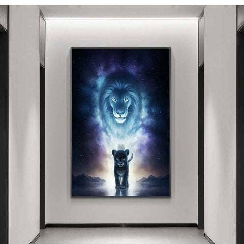 tableau visage abstrait lion dans le ciel