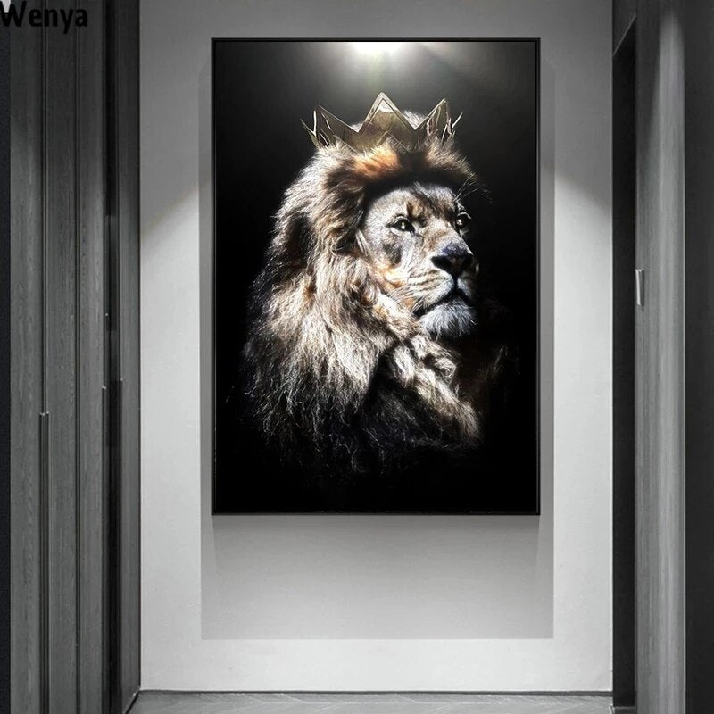tableau moderne lion et couronne