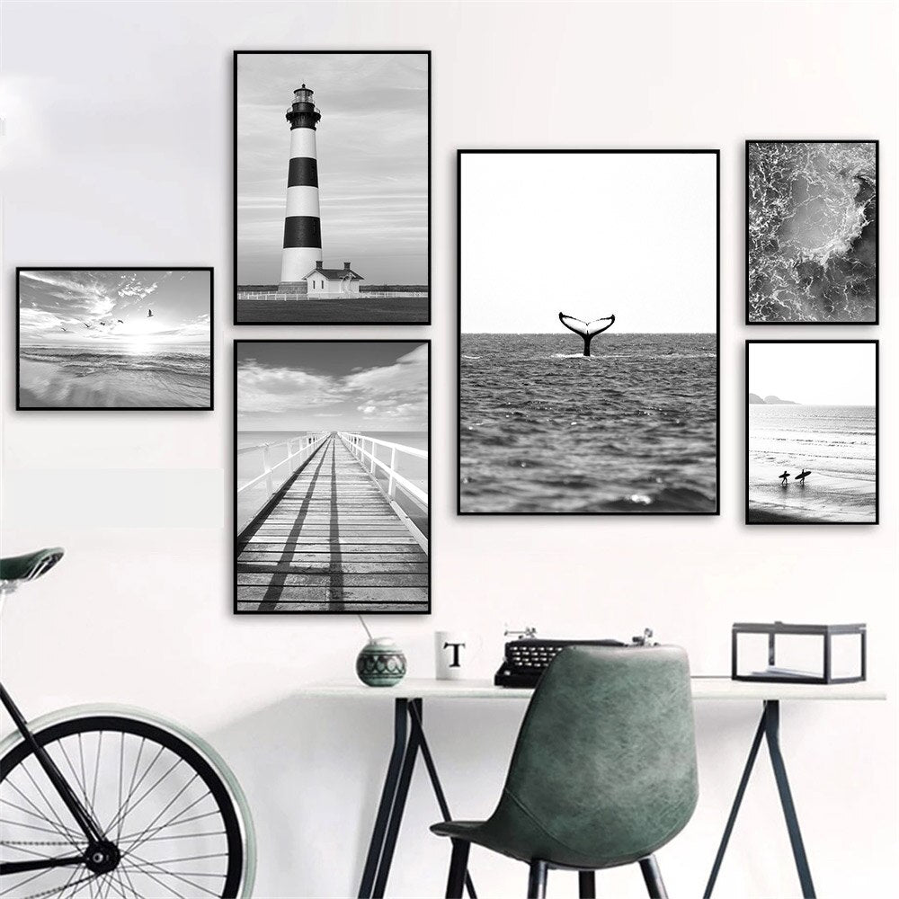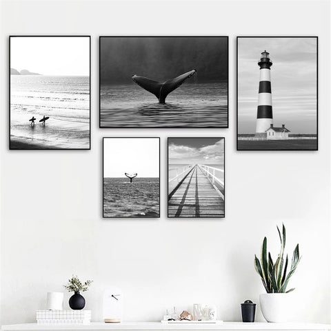 tableau noir et blanc plage calme