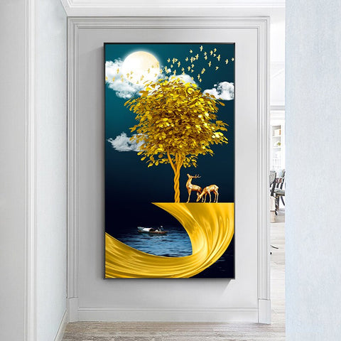 tableau peinture arbre magique en or