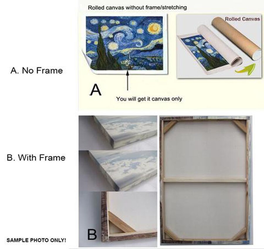 Cadrage en bois disponible (variante "sans cadre" = simples toiles !)